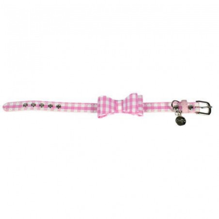 Hundehalsband aus weichem Leder und Baumwolle mit rosa Vichy-Mustern. Erhältlich in mehreren Größen und anderen Farben. Mögliches Set mit Leine und Geschirr. Größen: T30: 21 bis 26 cm x 15 mm T35: 23 bis 31 cm x 15 mm T40: 28,5 bis 36 cm x 20