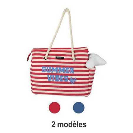 Weiß gestreifte Tasche mit sommerlichem Design,