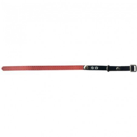 Cat collar with address carrier system. Red color. Available in black. Dimensions: 15 to 23 cm x 10 mm Leather cat collars with a tab for entering the cat's contact details. Available in black. Dimensions: 15 to 23 cm x 10 mm
