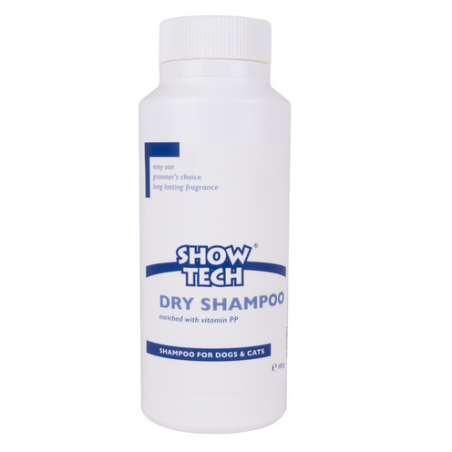 Champú en polvo para cachorros, animales senior y gatos a los que no les gusta que los laven.