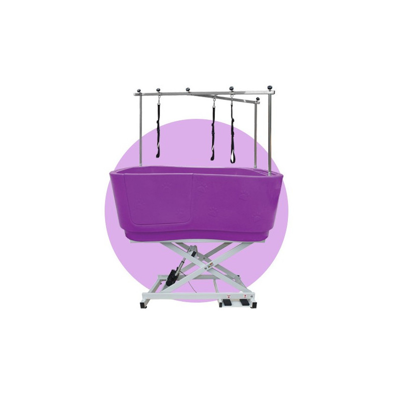 a baignoire est montée sur châssis, ce qui permet donc de varier sa hauteur de 84 à 128 cm. Des emplacements pour disposer les shampooings ont été prévus afin de facilter votre travail au moment du lavage du chien. La bonde inox est munie d'un panier pour la récupération des poils afin d'éviter l'obstruction du conduit d'évacuation.Â