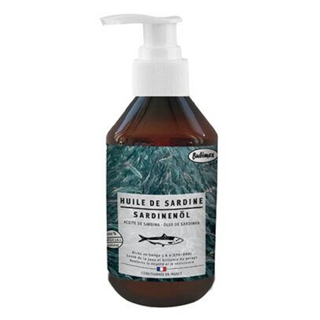 L'huile de sardine Bubimex, pour chiens et chats est un aliments complémentaire de qualité supérieure, riche en acides gras essentiels comme les oméga 3. Elle soutient la santé de votre animal en améliorant l'état de la peau et du pelage, en reforçant le système immunitaire et en favorisant la santé cardiovasculaire. Elle aide également à réduire les symptômes liés à l'âge et à accélérer la guérison des blessures.