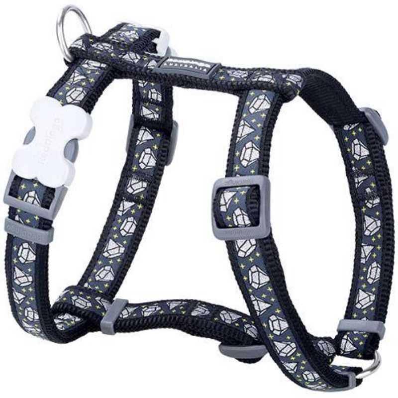 Harnais Red Dingo pour chien noir et motifs diamant avec boucle d'ouverture en forme d'os