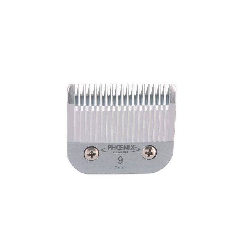 Testa di taglio Phoenix Universal n°9 della gamma Classic. Per le tosatrici che utilizzano il Clip System (contattaci per la compatibilità ) - Altezza di taglio 2 mm Una gamma di pettini classici di alta qualità Progettate per le nostre tosatrici, queste testine di taglio sono compatibili con molte altre marche di tosatrici